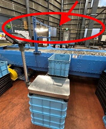 コンベアには作業者が巻き込まれることを防止する安全設備(緊急停止スイッチ)